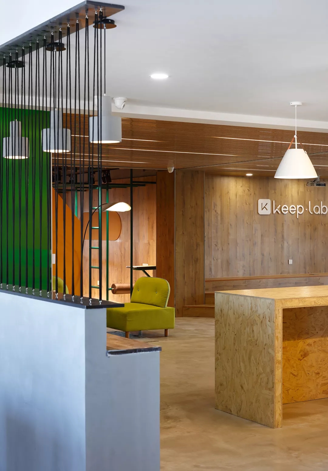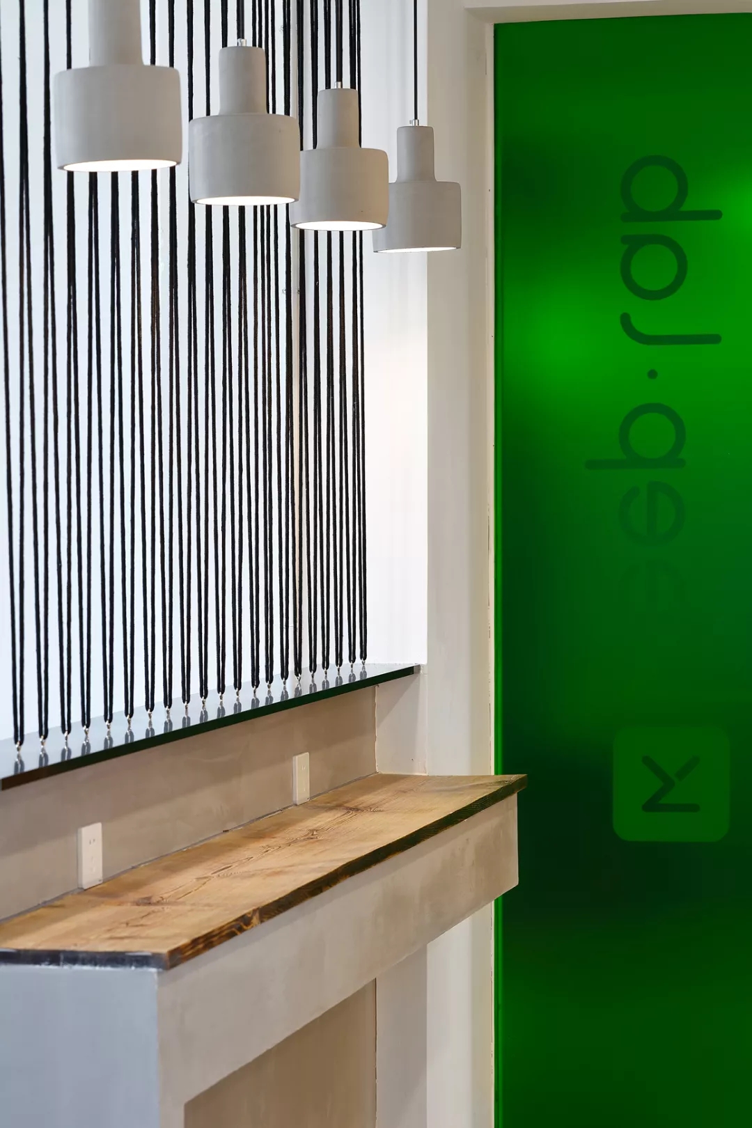 項(xiàng)目位于北京東二環(huán)附近,一棟翻新寫字樓中的三層,樓上兩層為辦公空間,樓下為內(nèi)部使用的健身房及餐廳。為了給這群成長(zhǎng)迅速的健身達(dá)人打造一個(gè)更能施展拳腳的辦公空間,設(shè)計(jì)師用“破殼而出“為設(shè)計(jì)核心表達(dá)“自律給我自由”的企業(yè)文化。