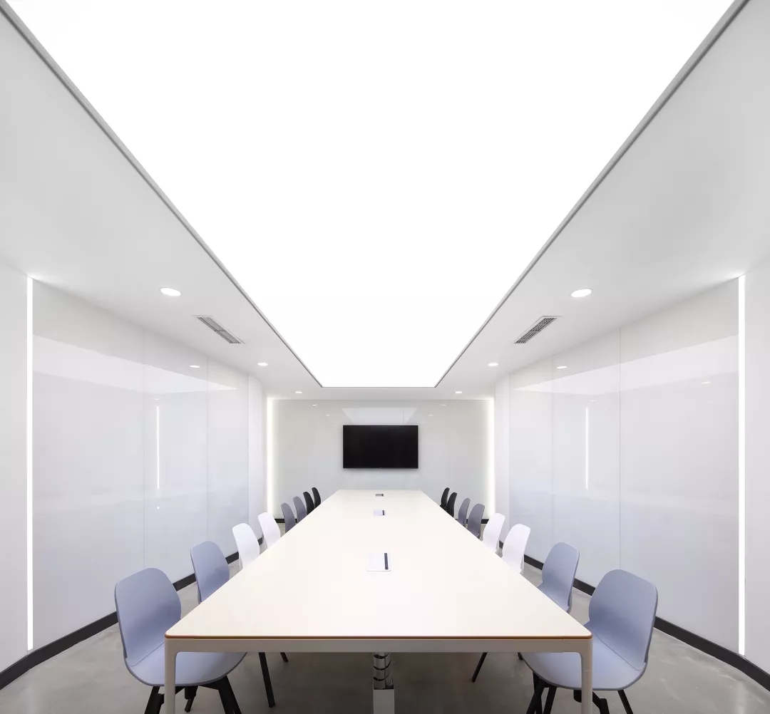 靠近電梯入口的前臺(tái)通過(guò)頂部的放射狀線條設(shè)計(jì)產(chǎn)生視覺(jué)延伸感,兩側(cè)區(qū)域通過(guò)軟裝陳設(shè)實(shí)現(xiàn)多層次的空間,靈活滿足接待、等候、會(huì)議及咖啡茶點(diǎn)的各種需求,員工和來(lái)訪人員各取所需互不干擾。