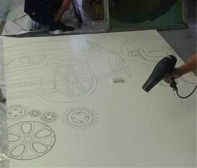 這幅畫(huà)是最初設(shè)計(jì)的圖案,圖形繪制的大粉筆畫(huà),它的好處是可以定期的更換,就像黑板報(bào)一樣來(lái)制定不同的主題,就員工的活動(dòng),員工的留言簽字都可以在這體現(xiàn),如同活的展示墻。