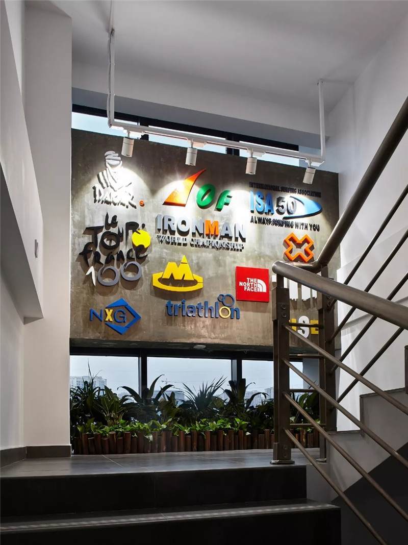 后期我們選用了一些戶外探險(xiǎn)的運(yùn)動(dòng)裝備,包括有一些極限大賽的LOGO,作為裝飾裝在了墻上,能很好地凸顯科技運(yùn)動(dòng)公司的主題,視覺(jué)效果也非常好。以上是兩個(gè)相對(duì)完整的案例,接下來(lái)還有一部分比較分散的項(xiàng)目有可能沒(méi)有形成系列,但是也都有不同的特點(diǎn)。