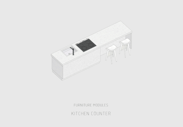 The Service Box is for package delivery;The Social Box works as a living room and reading space;The Female Box is kitchen and kid‘s area. Each box is relatively independent and still connected in some way. We think the Female Box is the core of Youkong Living room since the majority group of residents in community is female and children, the Female Box can not only provide kitchen space, but also work as a party space for residents, which make it the Social Box an extension of Female Box.
