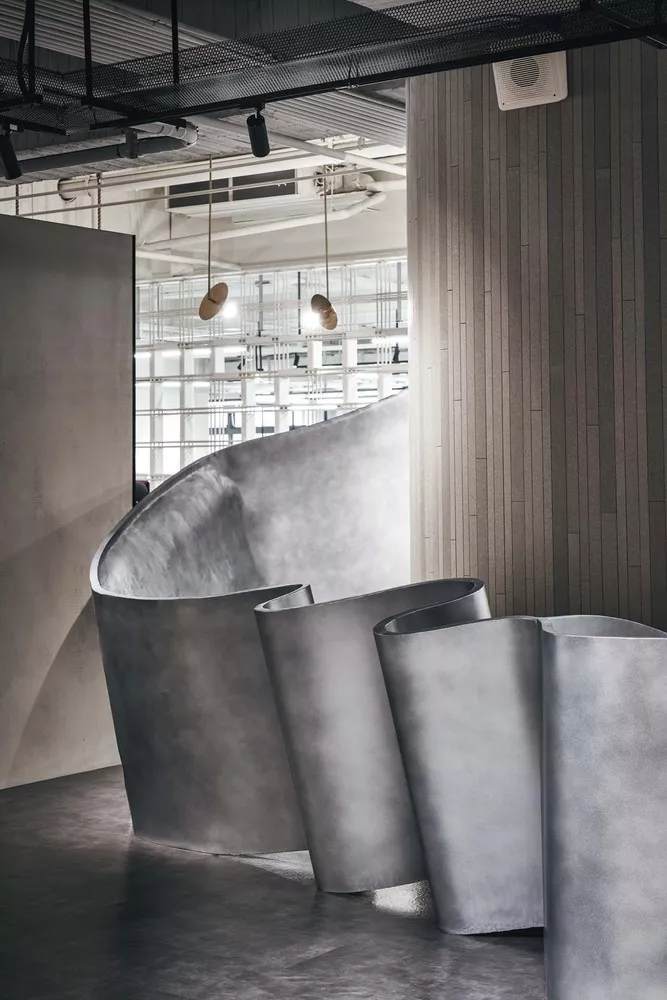 創(chuàng)意是無限,沒有邊界的。是一條線、亦是線聚集轉化而成的曲面。直線,是思考的軌跡。曲面,是每個創(chuàng)作的轉折,線條的動靜之間,串聯了空間,刻意保留基地原貌的原質肌理,植入了新的設計元素,呈現粗曠和細致的沖突美,來表達品牌精神:前衛(wèi)、年輕、精致、優(yōu)雅。充滿雕塑感的柜臺,佇立于公共空間中充滿風采,勾勒新穎且醒目的企業(yè)形象。
