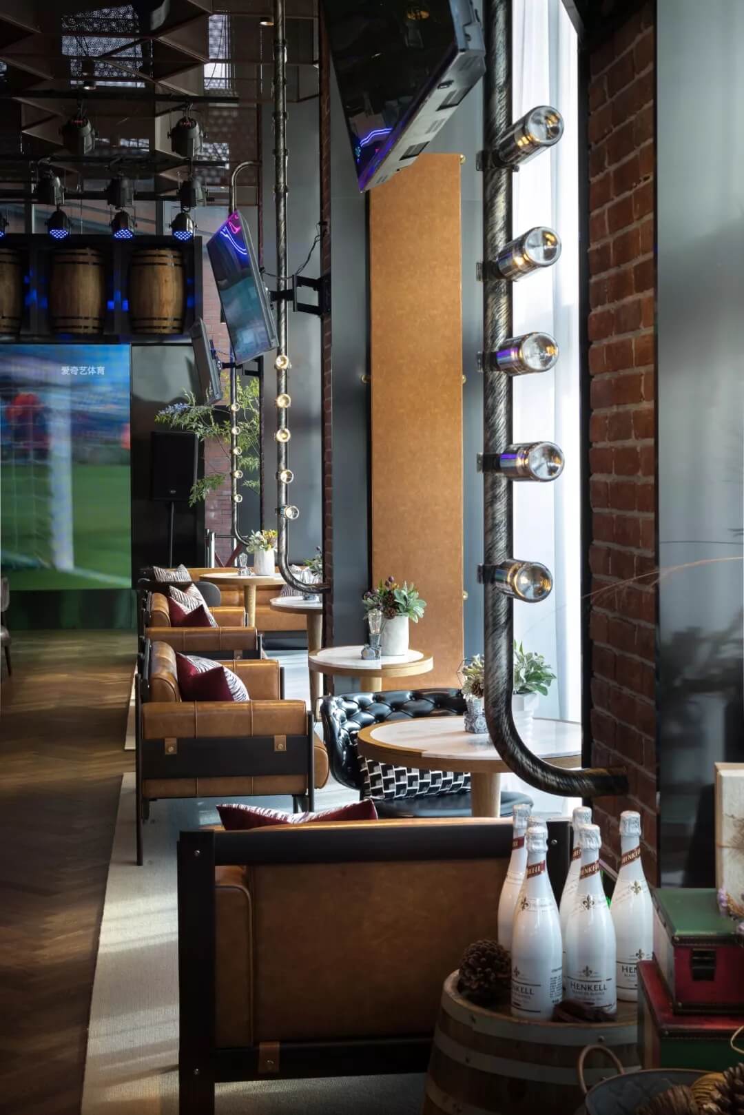 樂尚設(shè)計擔(dān)綱本案室內(nèi)及軟裝設(shè)計,以國際化、多元化的設(shè)計詮釋風(fēng)格定位,在手法上提煉工業(yè)風(fēng)的構(gòu)件元素,“工業(yè)風(fēng)的形式與氣質(zhì)融注其中,自然的生態(tài)美亦盡數(shù)納入,粗獷與細(xì)膩在映襯中的美學(xué)意義更臻完滿,設(shè)計的意旨得以實(shí)現(xiàn),營造出俱樂部看球賽現(xiàn)場的濃郁氛圍感。”