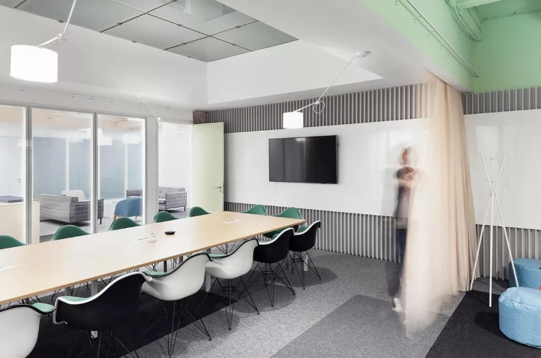 FT快捷的工作流程使辦公空間中的各種協作點更加容易 - 從入口處的大型開放式活動區(qū)域開始,繼續(xù)通過各種開放式會議區(qū)域流入休息區(qū)和休閑區(qū),創(chuàng)造了一個流動的工作環(huán)境。邊界沒有嚴格設定。