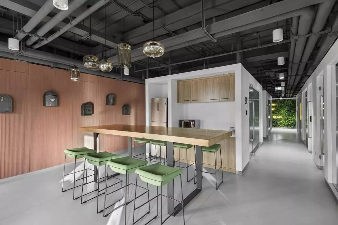 在空間劃分上,我們遵循城市綠色生態(tài)美學,充分利用創(chuàng)新技術進行模塊化設計,將裝配式建造、節(jié)能低碳等許多新理念應用到整個空間中去,將整體空間劃分成商務區(qū)、辦公區(qū)和休閑區(qū),具體到擁有獨立辦公室65個,辦公工位464個,會議室5個,以及水吧、咖啡廳、休息艙、茶室、電話亭等共享區(qū),我們想要脫離傳統(tǒng)辦公空間的單調枯燥,讓一站式的休閑服務和辦公完美結合,觸達現(xiàn)代人內心的深層需求,從而使整體設計方案在保持高品質的同時做到高效、低成本。