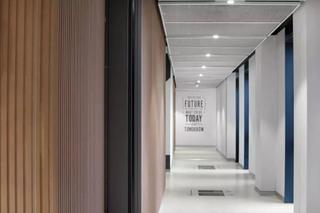 在呈現(xiàn)綠色生態(tài)之外,我們想要現(xiàn)代科技隨處可感觸可體驗,所以在整個辦公區(qū)域內,融入了人臉通行、數(shù)字化管理、辦公會議共享預定以及會議無線投屏等功能,再加上手機搖一搖的開門技術,讓人和空間時刻都能進行智能互動。