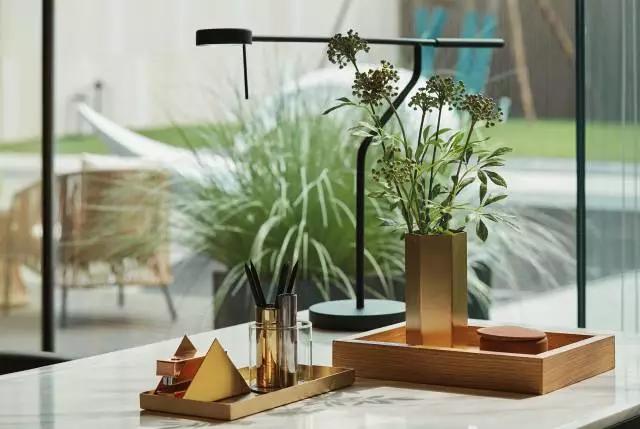 深灰色意大利火山石與柔和的沙發(fā)茶幾相得益彰,互為映襯。而光線照射進來更是活躍了整個空間,落地窗外便是庭院。水景區(qū)域一只白天鵝正在梳理羽毛,而水畔一側(cè)的休息區(qū)域更是增添了一縷閑情逸致,營造一種靜謐愜意的氛圍。