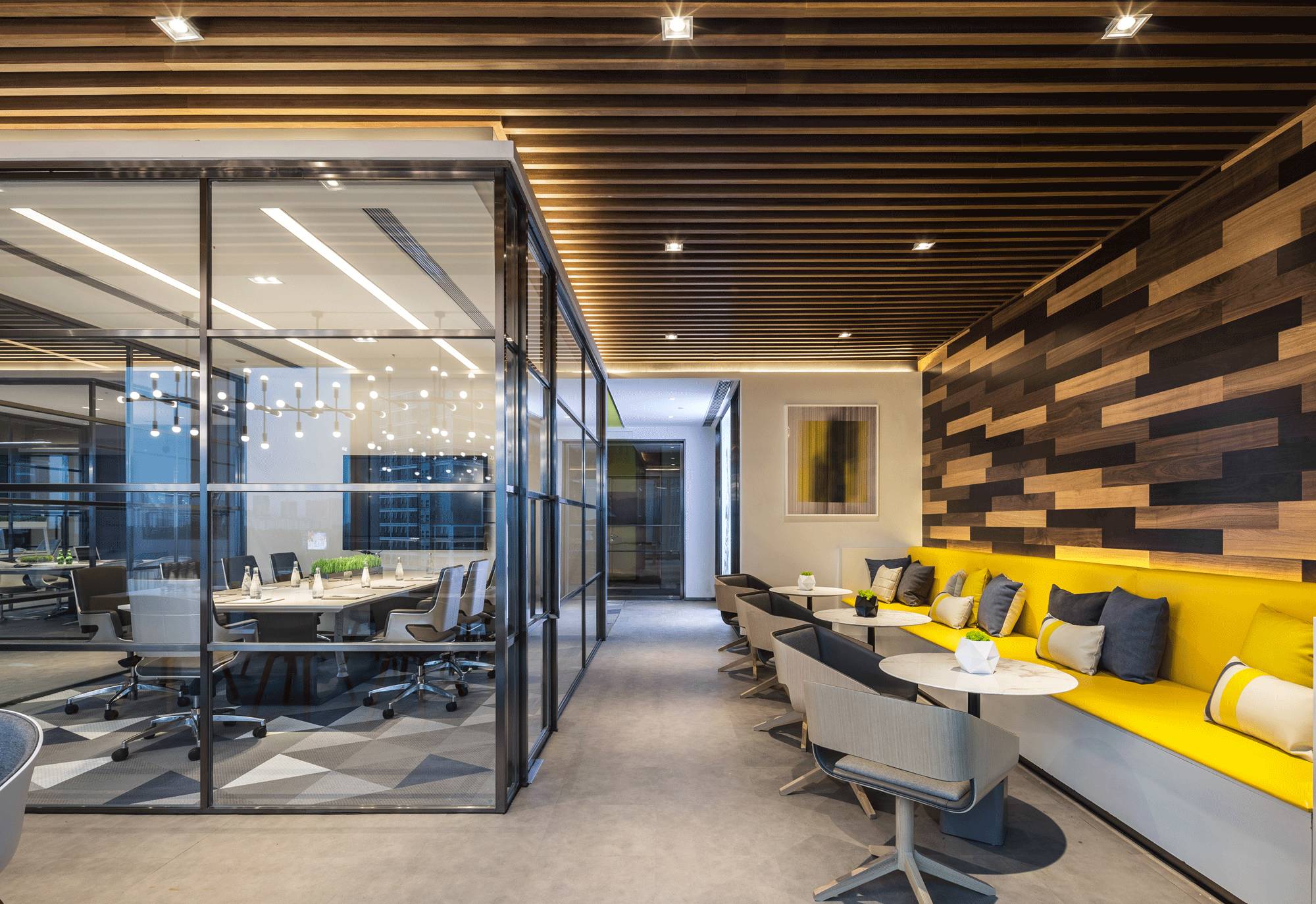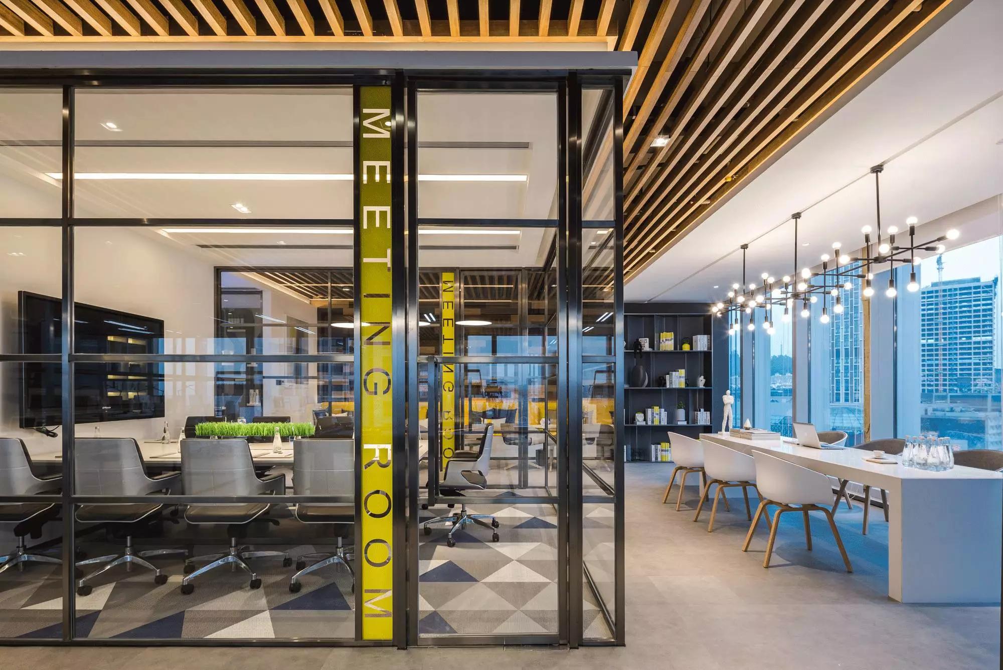 采納了“自由”空間慣用的開放式設計,拋棄了沉悶的障礙物、墻壁,僅預留必要的墻體,并用少數玻璃分割不同的空間,多人會議室、小組會議室的靈活設計,動線連貫流暢,充分滿足了現代科技空間“樂活、高效”的辦公需求。