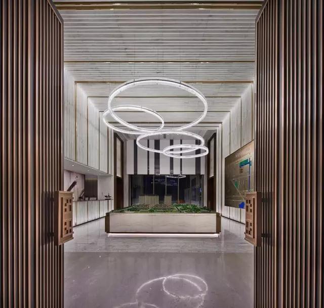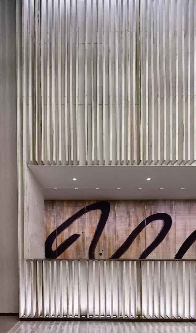 穿過充滿東方韻味的水中步道,在移步易景的氛圍里,不自覺地調(diào)慢身心節(jié)奏,悠然步入接待中心。設(shè)計師不拘泥于傳統(tǒng)石材的形體結(jié)構(gòu)和飾面方式,大膽創(chuàng)新地更改重構(gòu)。