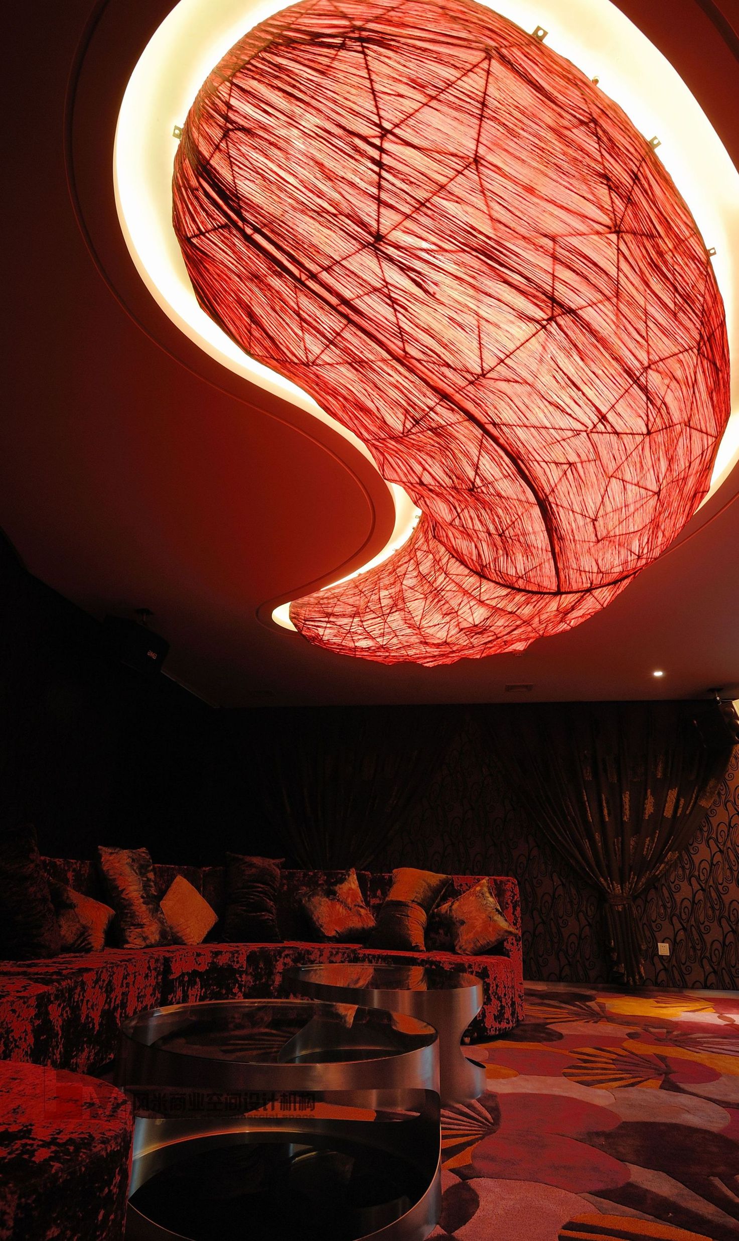 現(xiàn)代人的價值觀是一個在顛覆中發(fā)展的時期,人們的觀念在顛覆,消費的觀念亦在成熟中顛覆。所以在這次設(shè)計中我們要通過另一種美學(xué)設(shè)計手法再一次顛覆人們的審美價值觀。在設(shè)計中空間內(nèi)以超出常規(guī)的比例關(guān)系的形態(tài)來表露意識形態(tài)。在材料排布上以非慣性的處理手法來獲得人們對新形餐飲空間的認知,在色彩運用上以單體空間的色相統(tǒng)一來刺激人們對空間的色彩印象,在家具的造配上追求戲劇化的高度,奢華夸張的概念。使空間在整體上達到一種戲劇化的舞臺效果,讓人們游走其中產(chǎn)生一種非常規(guī)概念的心理感受,從而感受到空間的美感。